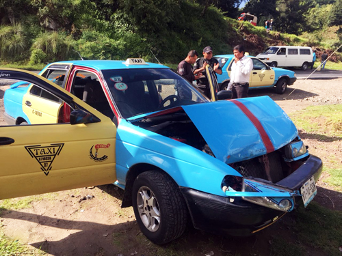 El conductor del taxi aseguró que se dirigía a Teziutlán, pero al llegar a una curva, se encontró con la colectiva de color blanco, la cual había invadido el carril, sin embargo no tuvo tiempo de evitar el impacto de frente, el cual provocó lesiones a dos de las pasajeras del taxi, por lo que de inmediato solicitó ayuda a través del teléfono de emergencia 911. Elementos de la policía municipal y la dirección de protección civil de Chignautla, acudieron al lugar del percance y en primer término estabilizaron a las dos mujeres, de quienes se dijo que se desconoce su identidad, ya que fueron trasladadas de inmediato a la ciudad de Teziutlán, en donde fueron internadas de urgencia en el hospital Guadalupano. El taxi color azul con amarillo y placas de circulación 8710-SSK del estado de Puebla, quedó en el lugar con daños materiales de consideración en la parte frontal, específicamente en el motor y sistema de enfriamiento, en tanto que se informó que la colectiva de urbanos de Teziutlán, se dio a la fuga.