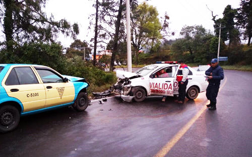 Patrulla de vialidad chocó contra taxi en Zacapoaxtla 13 Febrero 2019