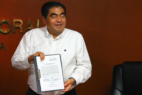 Miguel Barbosa recibe constancia como Gobernador electo de Puebla *Garantiza condiciones para lograr el bienestar de todas y todos los poblanos con nuevas formas de hacer gobierno *Todos a trabajar por Puebla pues hay mucho que hacer, invita el gobernador electo *Por primera vez en 16 años un resultado electoral no es impugnado. 12 Junio 2019