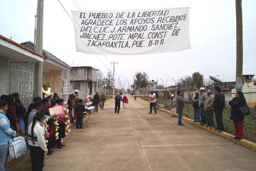 El juez de paz, Crisóforo Hernández Pérez así como el presidente del comité de la obra Domingo Román García, agradecieron al Presidente Municipal Armando Sánchez Jiménez la gran cantidad de apoyos a La Libertad en lo que va de la administración y señalaron que la calle 6 de enero representa una vía de acceso prioritaria para llegar al centro de la localidad. En su mensaje, el alcalde afirmó que durante muchos años, las comunidades más alejadas estuvieron marginadas de los apoyos, sin embargo, dijo que para la actual administración, lo importante es llevar los recursos a todos los rincones del municipio. Recordó que para esta comunidad se han apoyado a diversos comités escolares, además de entrega de material para la ampliación de la red de agua, se techó la plaza cívica de la primaria “Mártires de la enseñanza”, se entregó un tractor para los ejidatarios, además de que ahora se inaugura la pavimentación de la calle 6 de Enero. Apoyos en deporte y pavimentos para 2012