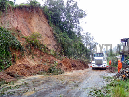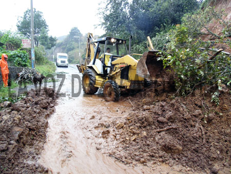 Los autos compactos y camionetas pequeñas, se desviaron a través de un camino de terracería en la Colonia Calcahualco, pero las unidades grandes, permanecen varadas en la carretera a la espera de que las autoridades municipales retiren los árboles, piedras y tierra que obstaculizan esta vía de comunicación.