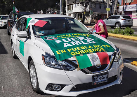 Acusaron al gobierno de Andrés Manuel López Obrador de incentivar el “comunismo” dentro del territorio nacional, además de emprender acciones en contra de “la patria”. Automóviles con pancartas rotuladas con mensajes como “López Obrador, vete ya”, “Fuera AMLO”, “En Puebla No Te Queremos”, “No más comunismo en México”, circularon este domingo. La caravana de este domingo en Puebla circuló por distintos puntos, ya que un grupo de automovilistas partió del Bulevar Forjadores, otros lo hicieron desde la zona de Valsequillo y el Bulevar Héroes del 5 de mayo, se desplazaron hasta la zona de Los Fuertes y también se dirigieron a Atlixco desde la capital. A su llegada a la Explanada del Águila, los dos contingentes con distintos puntos de partida ocuparon las áreas cercanas a la Zona de los Fuertes de Loreto, en donde entonaron minutos antes del medio día el himno nacional. Elementos de diversas corporaciones de seguridad poblanas acompañaron a la distancia a los manifestantes al tiempo que estos agitaban banderas mexicanas, soltaban arengas en rechazo “al comunismo que puede llegar a México” y tocaban el claxon a bordo de sus automóviles. Cabe señalar que ayer sábado se produjo en el municipio de Tehuacán una movilización contra el mandatario federal, al igual que se replicó en otras ciudades del país, convocada por el Frena. El pasado 30 de mayo se produjo en Puebla la primera movilización contra el presidente, y en esa ocasión los participantes se concentraron en la zona de Angelópolis. El presidente tiene prevista una visita a Puebla el miércoles próximo, como parte de una gira que realizará por el centro del país. El propio tabasqueño anunció que visitará los estados de Veracruz, Hidalgo, Tlaxcala, Morelos y Puebla, en donde realizará reuniones de seguridad pública y la evaluación de programas sociales. Esta será la séptima visita que el presidente realice a Puebla durante el gobierno del morenista Luis Miguel Barbosa Huerta. La última ocasión que visitó el estado fue el cuatro de enero, cuando acudió al municipio de Pahuatlán, para reunirse con los pueblos originarios.