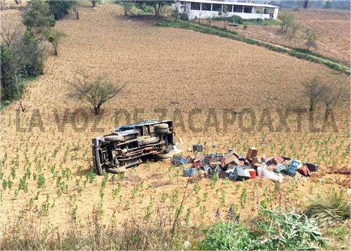 Tlatlauquitepec.- Un hombre de 38 años de edad, resultó lesionado debido a la volcadura de una camioneta marca Dodge que transportaba un cargamento de papas, percance que se registró en la comunidad de Acalocotitan en la junta auxiliar de Ocotlán.