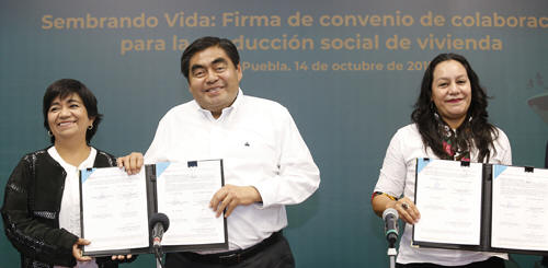 Apoyará gobierno del estado con el 45% para el programa sembrando vida · “La vivienda es un derecho público y una acción para combatir la pobreza”, destacó el Ejecutivo. · La secretaria de Bienestar federal, María Luisa Albores agradeció el respaldo del gobierno; se permitirá a los trabajadores del campo contar con una mejor calidad de vida 14 Octubre 2019