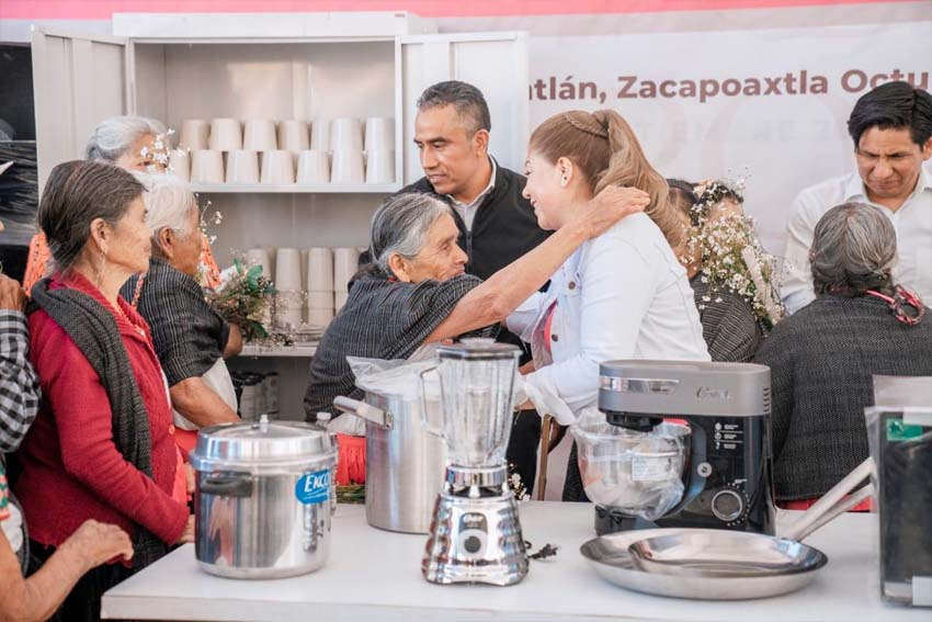 La Presidenta del DIF Yeni Judith Martínez Galindo, agradeció a la Presidenta del Patronato del DIF Estatal, Gaby Bonilla, por su respaldo a Zacapoaxtla, y en conjunto se entregaron 376 utensilios, además de refrigerador, horno de microondas, licuadora industrial, ollas exprés, horno para el pan, así como sillas para los abuelitos.