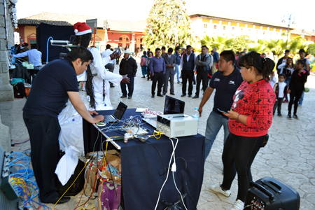 Francisco Caralampio Gómez, docente de la carrera, comentó que la exposición se había realizado en el Instituto, sin embargo se montó en el zócalo de la ciudad, con el objetivo de que estudiantes de primeria, secundaria y bachillerato, conozcan los procesos y técnicas para la elaboración de prototipos y robots que simulan vida.