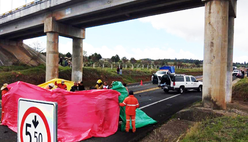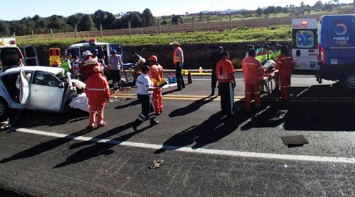 Paramédicos de municipios de Puebla e Hidalgo, se trasladaron al lugar y tras verificar el área localizaron a tres personas sin vida, pero dos más se encontraban prensados en la parte delantera del vehículo, por lo que procedieron a retirar las puertas y parte del tablero, lo que les permitió realizar el rescate de los lesionados y trasladarlos al hospital General de Zacatlán. Los elementos de rescate de Cruz Roja, SUMA y protección civil de Chignahuapan, Zacatlán, así como del municipio de Acaxochitlán Hidalgo, confirmaron a los cuerpos policiacos el deceso de tres de los ocupantes, razón por la que procedieron a cubrir el área donde se encontraban los cuerpos con plásticos para permitir el trabajo de los peritos. Agentes ministeriales del distrito judicial de Zacatlán, llevaron a cabo el levantamiento de los cuerpos, de los cuales no se proporcionaron datos, pero fueron trasladados al Servicio Médico Forense (Semefo), en donde se les practicó la necropsia de ley. Se informó que el impacto se debió a la alta velocidad a la que era conducido este vehículo de color gris, pero se desconocen las causas que provocaron que se impactara contra la columna de concreto, y es que no descartaron que el accidente se debiera a la invasión de carril de otro vehículo que se dio a la fuga y provocó que el chofer perdiera el control y se impactara contra la base del puente vehicular.