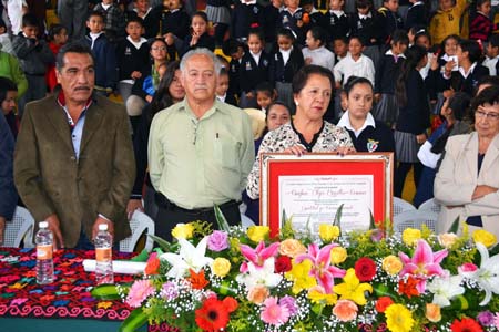 El personal docente le entregó un reconocimiento con el texto de “La mejor complacencia del ser humano es la satisfacción del deber cumplido”, por lo que le externaron su gratitud y reconocimiento por su trayectoria profesional prestado a la escuela y al desarrollo de la educación de este municipio.