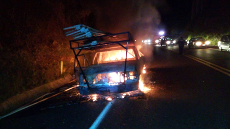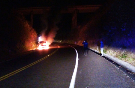 Se calcina camioneta en la pista Puebla - Teziutlán 16 Febrero 2016