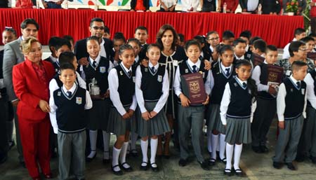 Alcalá Ruiz comentó que era una gran satisfacción ser la madrina de una institución educativa de alta calidad, además de presenciar los logros en cuanto a obra pública que alcanzaron de manera conjunta a través de las gestiones del alcalde y el Senado, que permitieron que esta Primaria ya cuenta con el techado de su plaza central. “El Presidente Enrique Peña Nieto se propuso mejorar las condiciones de las escuelas de todo el país y aquí en Zaragoza hoy constato que se está logrando, a mi como Senadora me tocó impulsar la Reforma Educativa que sin duda nos permitirá formar mejores generaciones”, expresó la Senadora.