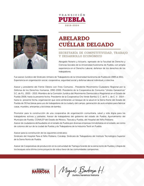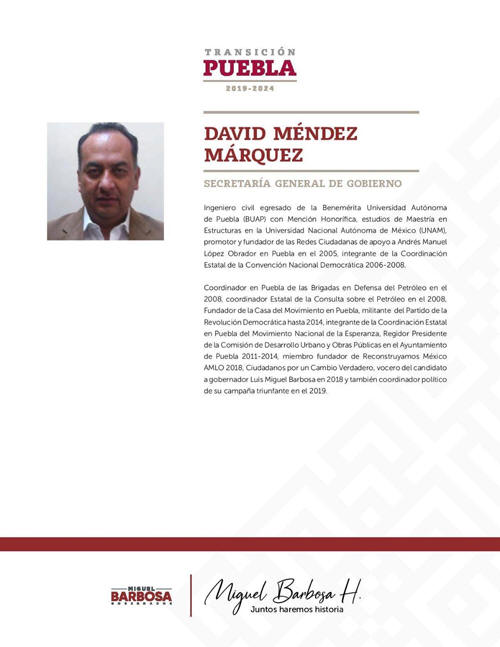 Presentan a integrantes del equipo de transición de Miguel Barbosa · Los trabajos comenzarán una vez que los gobernadores, electo e interino, lleven a cabo la reunión institucional para formalizar las agendas. 16 Junio 2019
