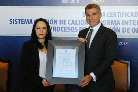 Tony Gali recibe certificado de calidad por procesos de licitación de obra pública 16 Noviembre 2017