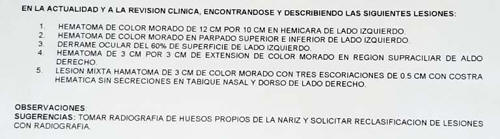 En la denuncia, Miguel Ángel “N.” relató que el pasado 12 de noviembre, cerca de las 23:00 horas, acudió a casa de su pareja, pero debido a una discusión que se presentó, acudieron al lugar seis elementos de la policía, quienes lo detuvieron y lo trasladaron a la comandancia. Afirmó que al llegar al lugar y aún con las esposas colocadas, lo comenzaron a golpear, lo tiraron y entre varios policías lo patearon, lo que le provocó lesiones en diversas partes del cuerpo, especialmente en el rostro. Al día siguiente y tras ver las lesiones que presentaba, sus familiares le recomendaron que se presentara una denuncia por abuso de autoridad y lesiones, por lo que acudieron a las oficinas de la Fiscalía en la ciudad de Zacapoaxtla, en donde en primer término fue evaluado por el médico legista. El legista dio fe de las lesiones, entre ellas un derrame ocular del 60 por ciento de la superficie del lado izquierdo, además de cuatro hematomas, uno de ellos de 12 centímetros, además de lesiones severas en el tabique nasal.
