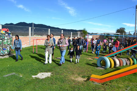 En primer término el edil y pequeños de este preescolar cortaron el listón en el portón principal y de esta manera quedó inaugurada esta obra, pero además el Presidente ofreció que una vez que se concluyan los techados de dos preescolares en la comunidad de La Libertad, se iniciará con la construcción del techado de la plaza cívica de este Preescolar “Gonzalo Bautista”.