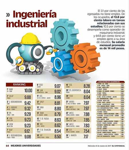 Así mismo, en lo que se refiere al programa académico de Ingeniería Industrial, éste destacó en el sitio número 20.