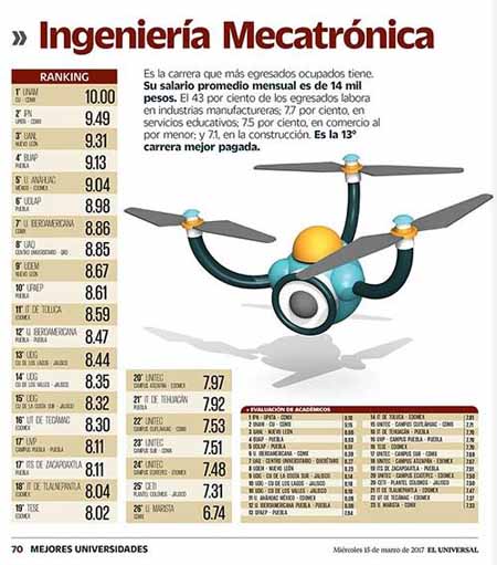 En cuanto a la evaluación por programas académicos, la carrera de Ingeniería Mecatrónica del Instituto Tecnológico Superior de Zacapoaxtla, este año se ubicó en el lugar número 17.