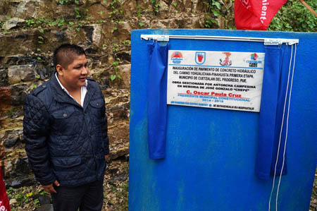 Pavimentan primera etapa de camino Yohualichan -Pinahuista. 17 Noviembre 2015