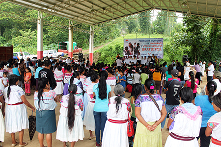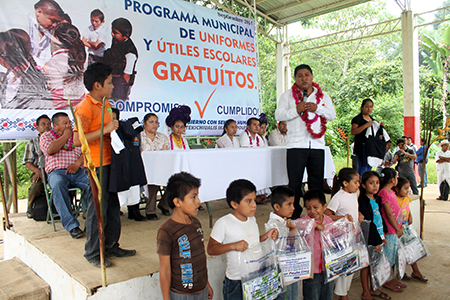 Informó que su administración también buscará un fondo para llevar a cabo la rehabilitación de este camino que en algunas partes es de terracería y dificulta que las personas trasladen a la cabecera municipal sus cosechas de café o llevar algún material hasta sus viviendas. Destacó que en este año se han bajado más de 30 millones de pesos por parte de la federación como recursos extraordinarios, los cuales ya están siendo aplicados y auditados. “Estando ya en los últimos meses del ejercicio fiscal, estamos comprometiéndonos a que antes del 15 de febrero todas las obras deberán de estar concluidas”, dijo Paula Cruz. Durante la gira de trabajo a esta comunidad, el Presidente entregó a los estudiantes los uniformes gratuitos como parte del programa que puso en marcha en este año, el cual benefició a más de 15 mil estudiantes de todos los niveles con una inversión cercana a los 7 millones y medio de pesos.