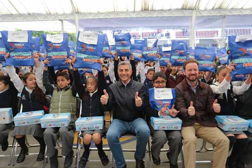 El mandatario destacó que los paquetes se complementaron con más de 141 mil zapatos escolares, para alumnos de primaria general e indígena, por un total de 22.1 millones de pesos, acción que se realiza por primera ocasión en la entidad. Informó que en la primaria federal Roberto Cañedo se otorgaron 775 paquetes a los estudiantes, que incluyen el mismo número de calzado, con el objetivo de fortalecer la economía familiar. Invitó a las y los niños a que sigan estudiando y preparándose para mantener los primeros lugares nacionales en materia educativa. Asimismo, recordó que Puebla fue pionera en la reincorporación del Civismo, con lo que se fortalecen los valores en la niñez y la juventud.