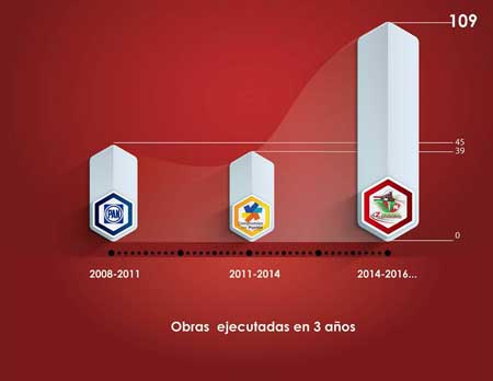 "En tres años sumamos ya 109 obras", con las que se superan las 56 de la administración 2008-2011 y 39 obras de la administración 2011-2014. Al término de la presentación del tercer informe de Gobierno, el representante del Gobernador, Armando Sánchez Jiménez felicitó al edil y comentó que Zaragoza va caminando hacia el progreso y el desarrollo, además por el trabajo de gestión que ha llevado a cabo para lograr recursos en beneficio de los habitantes de este municipio.