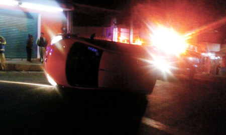 San Juan Xiutetelco.- Un vehículo de la marca Dodge, tipo Atos, con placas del estado de Veracruz, volcó en la calle Maximino Ávila Camacho de este municipio, percance que de acuerdo con la información oficial se generó, una vez más porque el conductor se encontraba en estado de ebriedad.