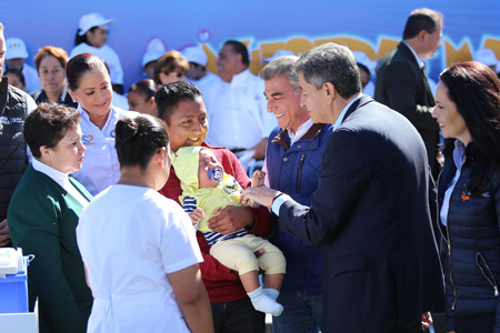 Pablo Kuri anunció que se emprende de manera formal la campaña 2017-2018 contra la Influenza, donde se otorgarán cerca de 32 millones de dosis en todo el Sistema de Salud, por lo que invitó a los ciudadanos a que acudan a las unidades médicas. En este sentido, subrayó que se destinarán a la población con mayor riesgo de contraer H1N1 como los niños de 6 meses a los 5 años de edad, los adultos mayores de 60 años y las personas de 5 a 60 años con diabetes descontrolada, obesidad grave o afecciones pulmonares y cardiovasculares delicadas. “Quiero reiterar a nombre del Secretario de Salud, la felicitación por el trabajo que se ha venido haciendo en el estado de Puebla en materia de salud”, indicó. Tony Gali, acompañado de la Presidenta del Patronato del Sistema Estatal DIF, Dinorah López de Gali, celebró que Puebla sea sede de este evento a nivel nacional y señaló que se aplicarán más de un millón de vacunas en el estado.