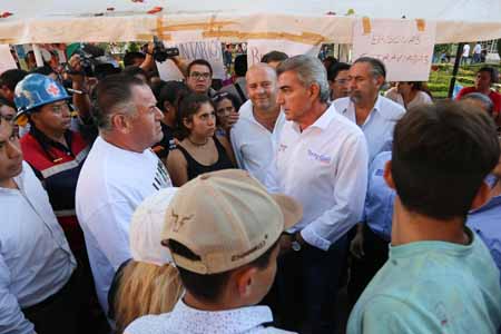 “Puebla está de pie, estamos muy solidarios, muy fuertes. Yo quiero que las familias estén muy fuertes, trabajando para levantarnos de esta tragedia que estamos lamentando”, aseveró el mandatario. Reiteró que no se van a escatimar recursos para que los deudos reciban apoyo económico y psicológico; de igual forma quienes tuvieron daños en sus viviendas, para que puedan hacer frente a esta situación de la mejor manera posible. Mencionó que se ha establecido un trabajo coordinado con el gobierno federal, Ejército y Marina por lo que reiteró el apoyo total a los poblanos e informó que próximamente realizará un recorrido en conjunto con el Presidente, por las zonas afectadas. El Secretario General de Gobierno, Diódoro Carrasco, reportó que se han registrado daños en 18 municipios de la entidad, de manera principal en la capital, área metropolitana, la ruta Izúcar-Chiautla de Tapia y Atlixco, donde se han presentado decesos, afectaciones en edificios públicos, escuelas, hospitales e iglesias.
