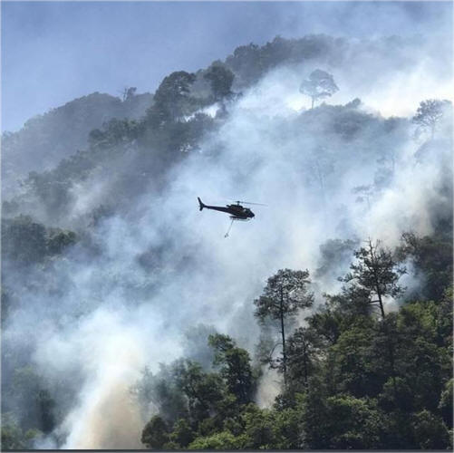 Aeronave cisterna combate incendio en Zacatlán · El fuego no representa ningún riesgo para la población: Protección Civil Estatal. · Cinco incendios más se encuentran activos en diversos puntos de la entidad. 21 Abril 2019