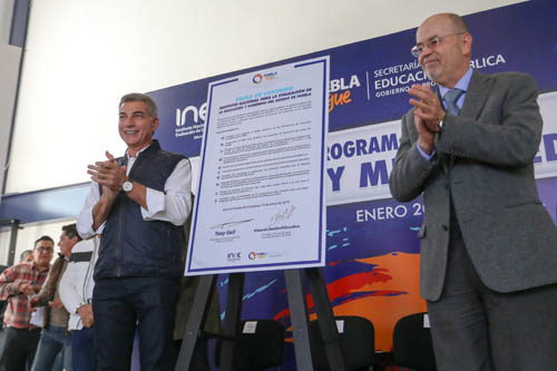 Puebla sigue mejorando la calidad educativa: Tony Gali · El mandatario y Eduardo Backhoff signan convenio de colaboración · Presentan Programa Estatal de Evaluación y Mejora Educativa 21 Enero 2018