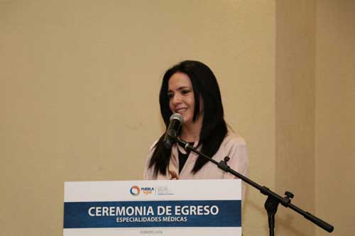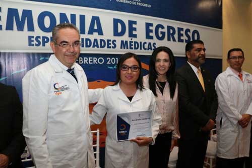 A nombre del gobernador Tony Gali, reconoció el compromiso y vocación de servicio, ya que durante dicho tiempo fortalecieron sus conocimientos y concluyeron una especialidad o sub especialidad médica. A la par, refrendó el compromiso de seguir apoyando su formación y capacitación en beneficio de las y los poblanos. Destacó que entre los egresados, ocho ya son parte del personal de la Secretaría de Salud del Estado de Puebla (SSEP), y ahora forman parte de la primera generación de urgenciólogos de base o regularizados favorecidos con el Programa de Profesionalización para la atención en hospitales de difícil cobertura al interior de la entidad. Explicó que el impulso a dicho programa permite que los trabajadores de la SSEP cursen uno de los 16 programas en los seis hospitales registrados ante el Sistema Nacional de Residencias Médicas y avalados por instituciones educativas, con lo que se cubre parte importante de la demanda en las unidades médicas del interior del estado.