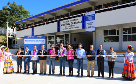 A las 10:00 horas el mandatario acudió a la primaria “Venustiano Carranza” de la junta auxiliar de Las Lomas, en donde inauguró en compañía de autoridades locales, la construcción completa de las instalaciones de este plantel educativo, obra que tuvo una inversión de 5 millones 961 mil 786 pesos, bajo el esquema Peso a Peso. El edil agradeció al Gobernador por los apoyos y al interior del auditorio de esta junta auxiliar, dio a conocer que además de esta escuela, en coordinación con el gobierno del ex Gobernador Rafael Moreno Valle, construyeron también las instalaciones completas del Bachillerato digital de la junta auxiliar de Tatoxcac y la primaria de la localidad de Xalticpac. Adicional a las 104 aulas construidas, dijo que con recursos del Ayuntamiento, se han rehabilitado a la fecha 85 aulas, además de que se llevaron a cabo trabajos de impacto como la inversión de 14 millones de pesos en el Centro Escolar “Héroes de Zacapoaxtla”, además de la rehabilitación y construcción de techado y espacios en la Primaria “Carlos Betancourt Molina”