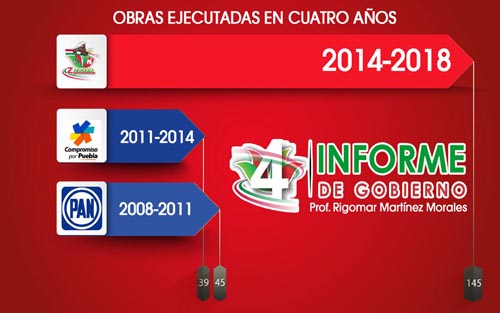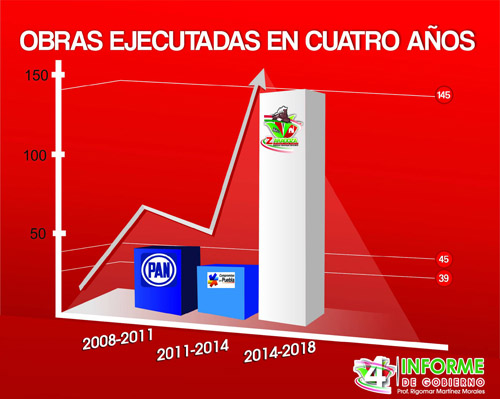 Tales obras fueron la Rehabilitación de la antigua estación del ferrocarril, la Construcción de cancha de fútbol rápido en Microunidad deportiva, la Construcción de alumbrado público en la Avenida Melquiades Morales y la Remodelación del zócalo municipal. Al término del informe, el Presidente Municipal agradeció el respaldo de dirigentes y alcaldes del PRI en el distrito de Zacapoaxtla y el reconocimiento al trabajo del Ayuntamiento de Zaragoza que lo colocaron dentro de los aspirantes a otro cargo de elección popular, pero dijo que siempre ha sido respetuoso de las indicaciones de los dirigentes de su partido y seguirá en la disposición de unirse al trabajo que le sea encomendado.
