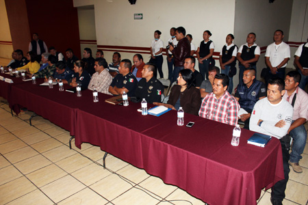 En entrevista, el Secretario señaló que en la reunión se intercambiaron datos sobre incidencia delictiva, se brindó información a los municipios acerca de la aplicación del nuevo sistema de justicia penal, se coordinaron los operativos que se llevarán a cabo de manera conjunta entre las bases de la Policía Estatal Preventiva (PEP) y las policías municipales, para reforzar la seguridad en carreteras.