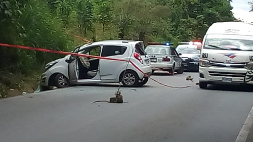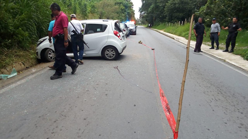 Metros más adelante el automóvil Spark se impactó en una ladera, momento que aprovecharon algunos sujetos para acercarse y disparar contra el ocupante del automóvil.