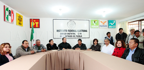 La comitiva que acudió al Consejo Distrital fue encabezada por el Lic. Abelardo Bonilla Cuevas, Representante personal del Diputado Fernando Morales Martínez, Presidente del Comité Directivo Estatal del PRI, el Lic. Javier López Zavala, Coordinador Estatal de Promoción al Voto del Lic. Enrique Peña Nieto y del Lic. Raúl González Hernández, Representante del PRI ante el Consejo Distrital 04; así como Presidentes de Comités Municipales en la región.