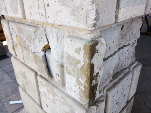 Mientras en Presidente con licencia Ebodio Santos Alejo, anda en campaña por diferentes municipios de la región, pequeños trozos de la cantera que fue traída de Apulco hacía el centro de Zacapoaxtla, se desprende y poco a poco crecen las afectaciones sobre las columnas del Palacio. Actualmente se observa una gran cantidad de clavos, algunos que provocaron el desprendimiento de partes de la cantera, inclusive se observan cuarteaduras en las columnas, especialmente en las ubicadas en la parte sur del Palacio.