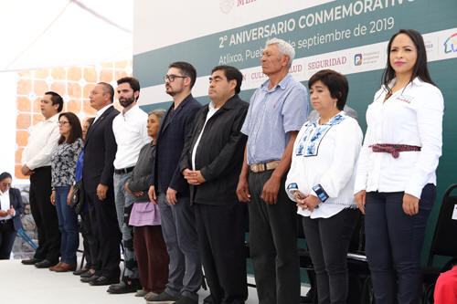 En el marco de esta sesión se entregaron apoyos para la reconstrucción de vivienda a Ausencio Rojas Grande de San Juan Tejaluca; Claudio Morales de Atlixco, Ernestina Hernández de la localidad de Flores Magón; así como Isabel Ubiera Jaimes de San Juan Portezuelo y Roxana Aca González de Otilio Montaño, quienes acudieron como representantes de las familias afectadas. Al acto conmemorativo asistieron los secretarios de Bienestar, Lizeth Sánchez García; de Educación, Melitón Lozano Pérez; de Salud, Jorge Humberto Uribe Téllez; el presidente municipal de Atlixco, Guillermo Velázquez Gutiérrez; el coordinador de Programas de Bienestar en Puebla, Rodrigo Abdala Dartigues; así como la directora de la Comisión Nacional de Vivienda, Edna Vega Rangel; el coordinador para la Reconstrucción de Bienes Culturales, Marco Aurelio Maza Hernández; y presidentes municipales de la región.