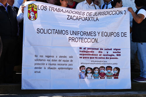 Comentó que el personal médico que establece el primer contacto con los pacientes, es el que enfrenta mayor riesgo y se requiere que cuenten con la protección necesaria, especialmente enfermeras, odontólogos, médicos generales y personal de asistencia en los hospitales. Moisés Acametitla Sánchez, representante del comité estatal de la sección 25, también aseguró que luego de que fue detectado el primer caso de Coronavirus en Teziutlán, se incrementaron las medidas para evitar contagios, pero los primeros que deben estar preparados son los integrantes del sector salud, para que puedan atender al resto de la población.