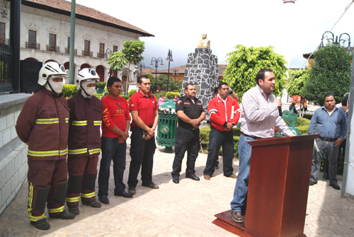 “Tengan la plena seguridad, que el escarmiento tan grande que vivimos no será motivo para que nos hagamos a un lado, los problemas los tomamos de frente y de frente daños soluciones, es muy sencillo hablar, es muy fácil criticar, pero es difícil actuar, y este gobierno es de actuar”… finalizó en su discurso el Presidente Municipal. Luego de esto, se entregaron 28 extinguidores a jueces de paz y presidentes auxiliares y frente al palacio municipal, el personal de bomberos, hizo una demostración de la fuerza de lanzamiento de agua de esta unidad.