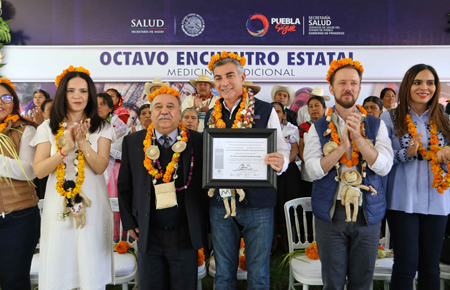 Ambos entregaron distinciones a terapeutas de las siete regiones del estado, con más de 50 años de servicio. En su mensaje, Tony Gali puntualizó que al ser Puebla una entidad con cultura y tradiciones, desde el inicio de su gestión se han ejecutado diversas acciones para que cada etnia indígena sea reconocida y respetada, así como sus usos y costumbres. Al inaugurar el Octavo Encuentro Estatal de Medicina Tradicional, el Ejecutivo detalló que el estado cuenta actualmente con 15 módulos de atención médica milenaria con servicios de homeopatía, curanderos, hueseros y parteras, así como baños de temazcal; convirtiendo al estado en pionero y ejemplo nacional de este rubro.