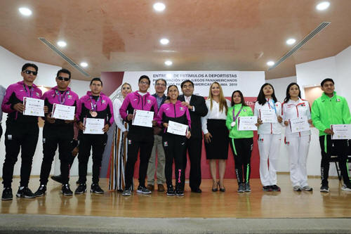 Ante padres de familia, amigos y familiares de los atletas ganadores, el gobernador instruyó a la directora del Instituto Poblano del Deporte, Yadira Lira Navarro, a que presente propuestas para las disciplinas popular y de alto rendimiento: “Es un asunto de mediano y largo plazo, pero es necesario rescatar la formación y el aliento de capacidades físicas, desde los niños hasta la etapa en donde se debe culminar toda la posibilidad de ser grandes deportistas”. El titular del Ejecutivo refirió que, si en Puebla se tienen mejores ejemplos de que las poblanas y poblanos pueden ser campeones, el futuro está de nuestro lado, por lo que ofreció poner a disposición las capacidades del gobierno para que en la entidad todas las ramas del deporte sean rescatadas. Por su parte, la directora del Instituto Poblano del Deporte exhortó a los deportistas ganadores a representar con orgullo a Puebla, ya que el gobernador Barbosa Huerta es un gran aliado, quien mantiene un compromiso para apoyar e impulsar el deporte entre la niñez, juventud y población en general. Los deportistas que recibieron estímulos son: Victoria Cruz Romano en la categoría de karate; Diana Luna Sánchez, natación; Marcos Madrid, tenis de mesa; Claudia Romero e Iván Torres, taekwondo; Laura Coraza Castañeda paraatletismo; Moisés Cereso, Omar Otero y Eduardo Cereso, fútbol 5 ASIDE; entre otros que resultaron ganadores en los Juegos Panamericanos y Panamericanos de Lima 2019. En la entrega de reconocimiento también estuvo presente el secretario de Educación, Melitón Lozano Pérez.