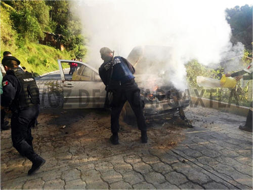 Las autoridades informaron que la tarde de este 23 de marzo, una mujer llamó a la comandancia de la policía y solicitó apoyo, debido a que un automóvil se estaba incendiando, por lo que al lugar fueron enviados elementos con extintores y mochilas aspersoras, con lo que iniciaron a sofocar el fuego.