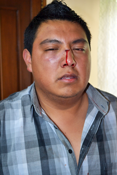 Márquez Rodríguez agregó que a pesar de que le habían quitado tanto su teléfono móvil como la cámara, los siguieron golpeando y al final, uno de los elementos se acercó y le golpeó en el rostro con un tolete, lo que le provocó la fractura de la pirámide nasal, lo que requirió en primer lugar la sutura en el hospital integral de Zacapoaxtla, pero luego de la valoración, requerirá de una operación con un especialista. Aseguró que este lunes 25 de mayo, acudirá a la casa de justicia en la ciudad de Teziutlán para presentar una denuncia por la agresión que sufrió por parte de los policías auxiliares, además del robo de su celular con un valor superior a los 9 mil pesos, la cámara que vale más de 12 mil pesos, además de mil 400 pesos en efectivo que le provocaron los elementos que viajaban a bordo de las patrullas. Los uniformados que agredieron, descendieron de una patrulla con logotipos de la policía auxiliar, con placas de circulación SJ-84958 del estado de Puebla y de una camioneta de tres toneladas con placas SK-20618 del estado de Puebla, además de al menos otras diez patrullas, a través de las cuales se trasladaban más de 20 elementos que decomisaron ropa en dos negocios de esta ciudad.