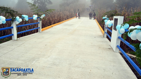 La obra consta de una construcción de 33 metros de longitud y 5 metros de ancho de concreto hidráulico, en donde los integrantes del comité de la obra Elías Galván Lobato, Juana Romero Díaz e Indalecia Galván Alejo, expresaron que esta obra quedará como una muestra de la disposición del actual Ayuntamiento para mejorar sus condiciones de vida, especialmente para evitar accidentes de la gente que cruza por el río que cruza la zona.