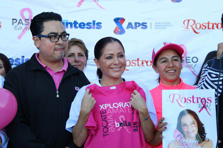 Destacó que, para su esposo Tony Gali, la salud de las mujeres es un asunto prioritario, por lo que trabajarán juntos en el estado para garantizar servicios de calidad y acciones preventivas. Al participar en las actividades organizadas por la campaña Pink Power y la Asociación Periodística Síntesis en el marco del Día Internacional de la Lucha contra el Cáncer de Mama, López de Gali pidió a las mujeres que dediquen una parte de su tiempo para hacerse una autoexploración y acudir a una revisión médica que les puede salvar la vida.