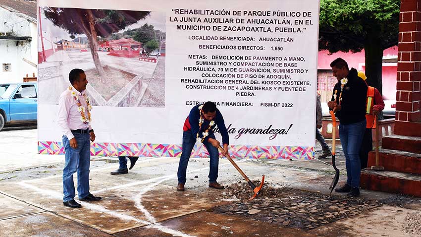 Zacapoaxtla.- Durante este viernes 23 de septiembre, el Presidente de Zacapoaxtla, Evelio Navarro Lara inició una obra en la Junta Auxiliar de Ahuacatlán, una más en la comunidad de San Juan Tahitic y finalmente inauguró una pavimentación en la colonia Rancho Bonito, perteneciente a la Junta Auxiliar de Xalacapan.