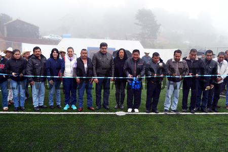 Luego del mensaje que dio el alcalde a los asistentes al evento, se procedió en primer término al corte del listón de la cancha de futbol, se dio la primera patada, más tarde se inauguró la cancha de basquetbol con la primera canasta y al final, se llevó a cabo la develación de la placa. Óscar Paula Cruz informó que entre canchas comunitarias, canchas en instituciones educativas, techados y la Unidad Deportiva, el ayuntamiento destinó más de 9 millones de pesos durante el ejercicio fiscal 2014 a la construcción de espacios deportivos en todo el municipio.