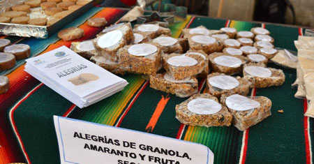 pinole, alegrías elaboradas con amaranto, granola y frutas secas,