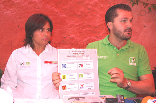 La primera propuesta es convertir a los vales para medicina en un programa social, para que aunque el senado no lo apruebe, se destinen recursos para que la gente cuente con medicamentos después de una consulta, el cual dijo que Peña Nieto pondrá en operación esta propuesta desde un principio en caso de que obtengan el triunfo el próximo un de junio. Recordó el lema de su partido “Si el gobierno no te da las medicinas, que te las pague”, por eso se convertirá en programa social y será una garantía para los pacientes. La segunda es que se aplique cadena perpetua para secuestradores. Recordó que el Partido Verde ya logró que se le aplicaran 70 años de cárcel a los delincuentes, sin embargo puso de ejemplo que a la sociedad no le gustaría que un secuestrador de 20 o 25 años sea detenido, y en 30 años saliera de la prisión cerca de los 50 años, por eso dijo que es fundamental que a los secuestradores se les de cadena perpetua y se les obligue a realizar labores de servicio comunitario al interior de los penales. La tercera propuesta es exigir a los directores de las escuelas que dejen de solicitar cuotas en las escuelas, para lo cual proponen que se destine más recursos para todos los gastos necesarios de las escuelas y que los padres de familia dejen de aportar cuotas. La cuarta propuesta es que exista mayor infraestructura, que se destinen más recursos a garantizar el abasto de agua al mayor número de mexicanos con la realización de obras para eficientar los sistemas de agua potable y que se cuide que llegue a todos los hogares y se desperdicie por falta de una red en buen estado. La quinta es que se sancione a las empresas que contaminen los ríos y arroyos de este país, “el que contamine debe pagar y resarcir el daño a los manantiales”, ya que aseguró que se debe evitar que desechos tóxicos sigan contaminando los ríos, porque el medio ambiente es de todos porque lo mínimo que le podemos dejar a los hijos y nietos es un medio ambiente sano, finalizó Juan Carlos Natale. Fotos: Josefina García Hernández, candidata a la diputación por el distrito IV; Juan Carlos Natale, dirigente estatal del Partido Verde y Lucía Cruz Arroyo candidata suplente a la diputación.