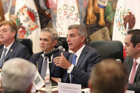 En el encuentro se anunciaron las acciones que se ejecutarán, en coordinación con los tres niveles de gobierno, en los estados de Puebla, Hidalgo, Morelos, Querétaro, Tlaxcala y la Ciudad de México, en beneficio de los ciudadanos. Estuvieron presentes Fernando Galindo, subsecretario de Egresos de la Secretaría de Hacienda y Crédito Público (SCHP); Carlos Bussey, director general de Desarrollo Carretero de la Secretaría de Comunicaciones y Transportes (SCT). También Francisco Arturo Vega, gobernador de Baja California y coordinador de la Comisión de Infraestructura de la Conago; Rolando García, secretario Técnico de la Conago; Edgar Tungüí, secretario de Obras y Servicios de la Ciudad de México; Javier Lozano, Jefe de la Oficina del Ejecutivo, así como representantes de las entidades federativas que conforman la Comisión de Infraestructura.
